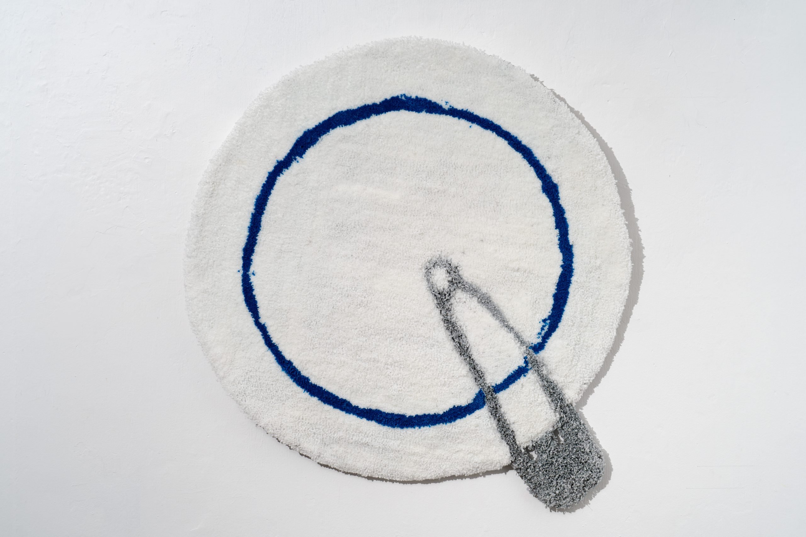 White kippah with a blue stripe, Tufted rug, synthetic wool