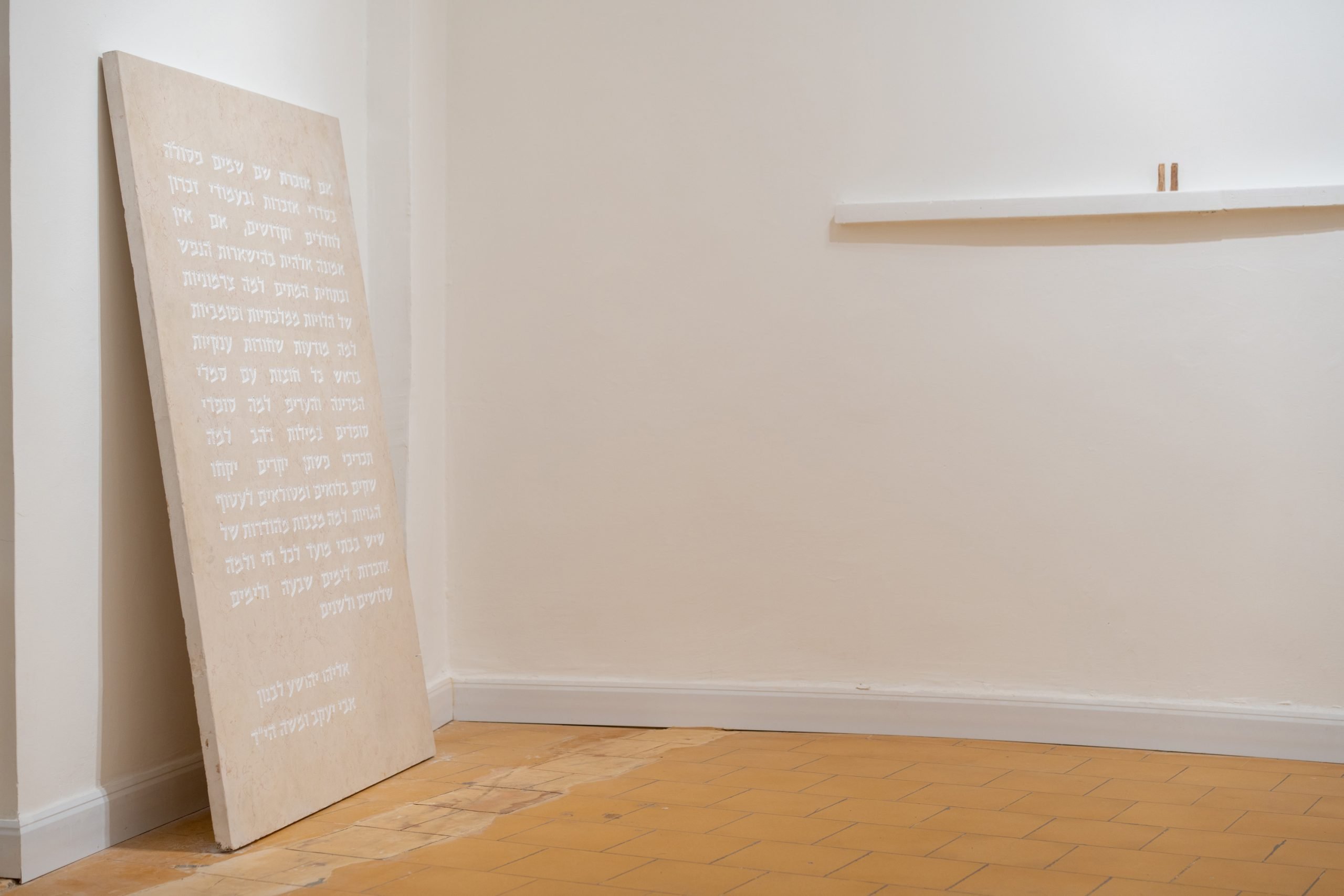 A stone from a terror attack in the land of Israel, Stone, wood, Perspex