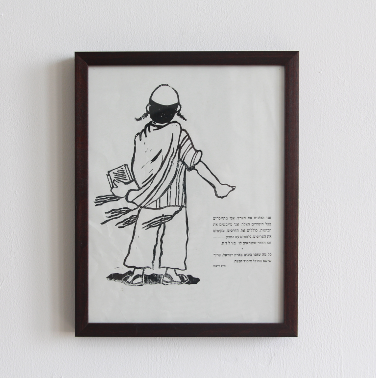 Homeland, Linocut on a page from the "Israel’s Tenth Anniversary" album