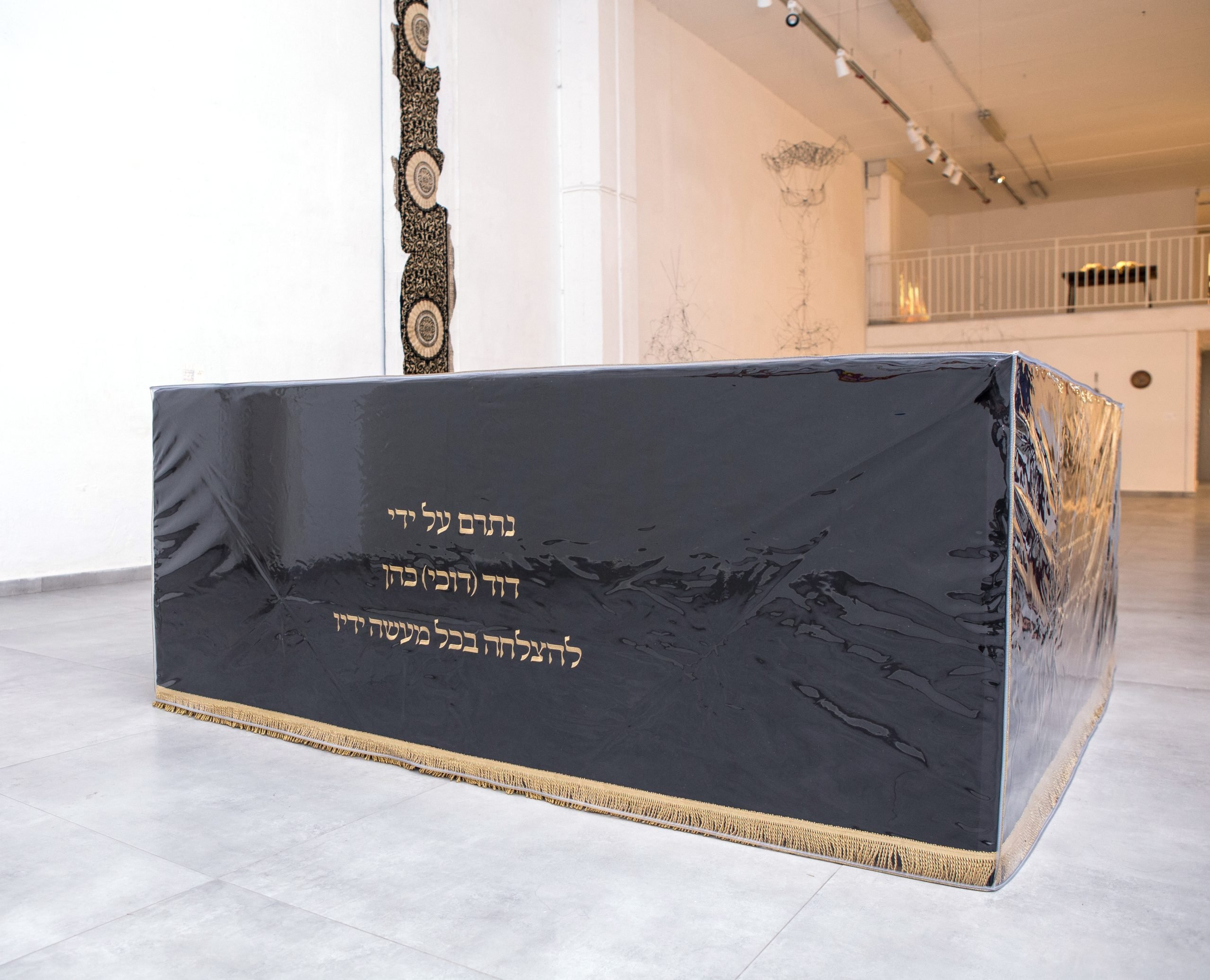 A stone from a terror attack in the land of Israel, Stone, wood, Perspex